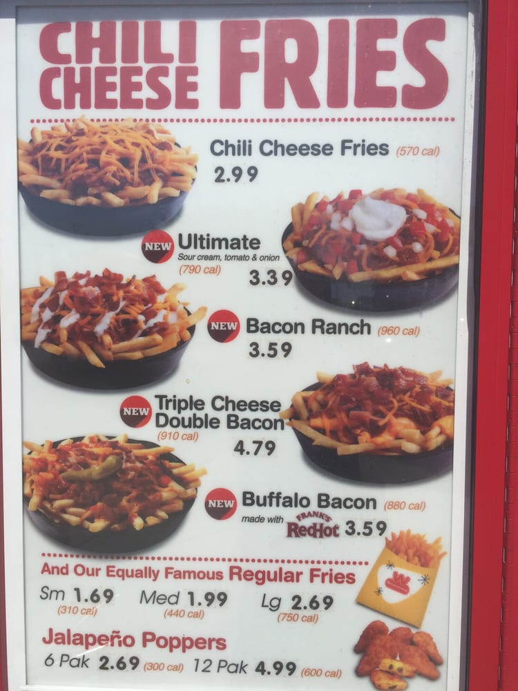 Golden brown French Fries topped with Wienerschnitzel's world famous Chili Sauce made from a secret recipe and shredded cheddar.